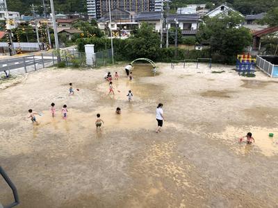 砂場がプールになっていました。